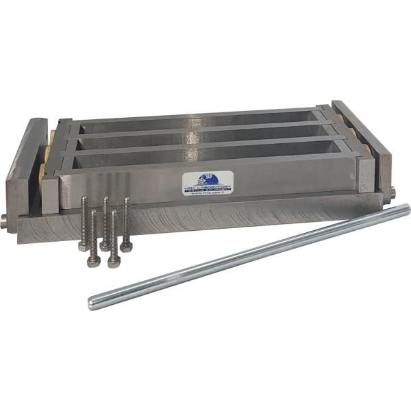 The device is used to determine the potential alkali reactivity of cement-aggregate combinations (mortar-bar method). This mould is also used for determining the length change of hardened cement paste, mortar and concrete.