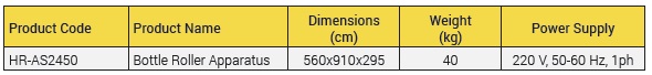 The Bottle Roller Apparatus is robustly constructed; designed to accept bottle of various sizes and rotates at speeds relevant to most international standards.
