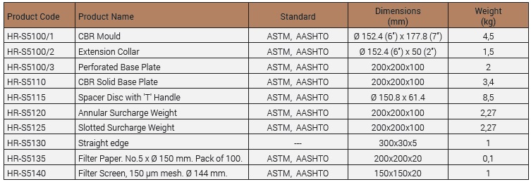 The CBR equipment, steel made and plated against corrosion is available in different versions according to the various Standards in force.