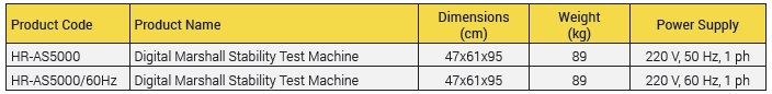 The HR-AS5000 50kN Capacity Digital Marshall Stability Test Machine is used to determine the maximum load and flow values of bituminous mixtures. The machine comprises of a robust and compact two column frame with adjustable upper cross beam. The unit is a bench mounting compression frame with motor and worm gear housed within the base unit. It is designed to operate with the minimum of maintenance.