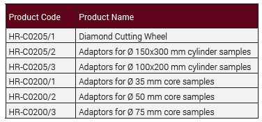 Adapters of cylinders and core samples can be easily mounted and removed.Supplied with Diamond Cutting Wheel and Adaptor for ∅150 mm cylinder samples.Other adapters should be ordered separately.