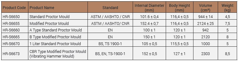 ASTM D 698, D 1557, D 558; AASHTO T 99, T180, T 134, EN 12386-2, 13286-4 BS 1377:4, BS 1924:2