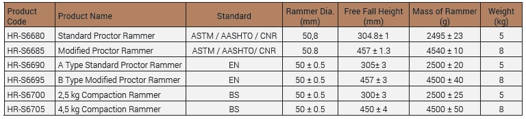 Rammers are used to compact the soil sample in the Proctor Moulds and made of plated steel.