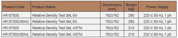 HR-S7500 Relative Density Test SetSupplied complete with 762x762 mm Vibrating Table (3600 rpm) whichadjustable vibration magnitude,14200 cm³0,5cu.ft.Relative Density Mould Set (Cylinder with lead, cylinder in cast aluminum, disc with handle and upper cylinder)and Relative Density Gauge Set.