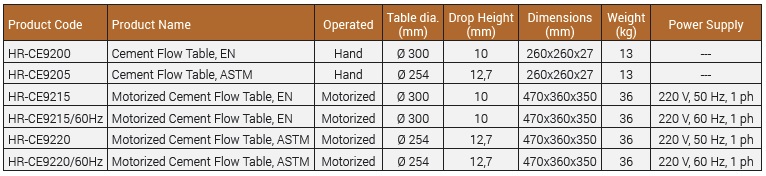 ASTM Model; the table is manufactured from stainless steeland ∅ 254 mm.