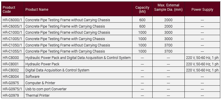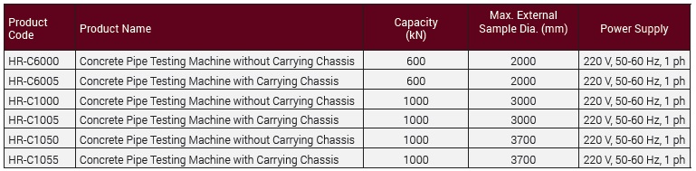 Please contact with us for different dimensions and capacity of Concrete Pipe Testing Machines.