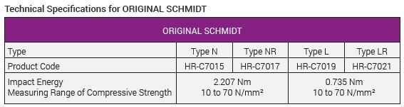Type N/L: The benchmark against which all rebound hammers are compared and the basis of every international rebound hammer standard.Available with different impact energies allowing customers to test a wide variety of materials and types of structure.