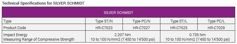The SilverSchmidt is a unique integrated concrete test hammer featuring true rebound value calculated from the quotient of the impact velocity and rebound velocity to provide maximum accuracy.